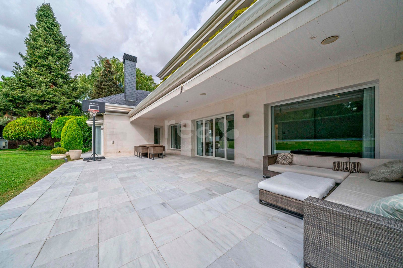 Magnificent luxury detached villa in La Moraleja, located in one of the most exclusive and secure areas of Madrid. The property stands out for its modern and functional design, spacious interiors, and an outdoor setting that ensures privacy and comfort.