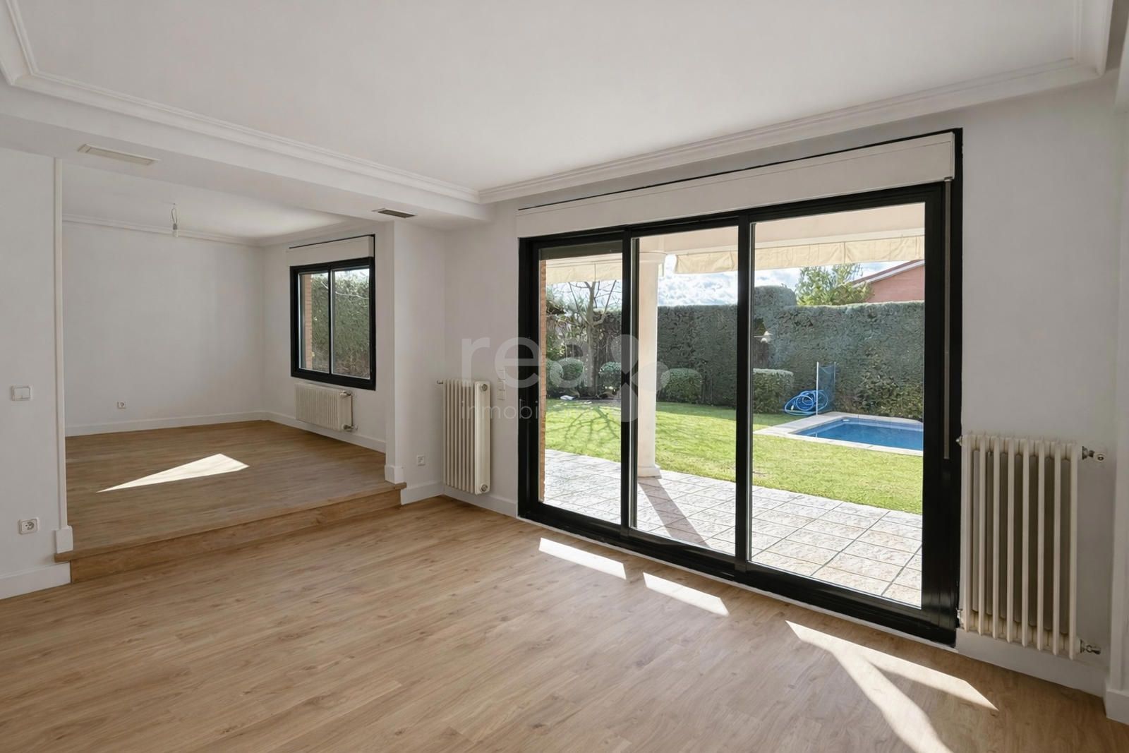 REA Inmobiliaria presents this fantastic semi-detached house with private garden and pool, ideally located within one of the most sought-after residential complexes in El Encinar de los Reyes.