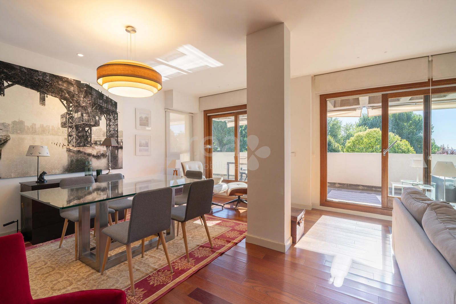 This magnificent apartment in El Encinar is situated within one of the most renowned and exclusive residential complexes in northern Madrid. It stands out for its well-thought-out layout and intelligent use of space, making this home comfortable, functional, and filled with natural light. The spacious and elegant living room opens onto stunning open views that create a great sense of space and connection with the surroundings.