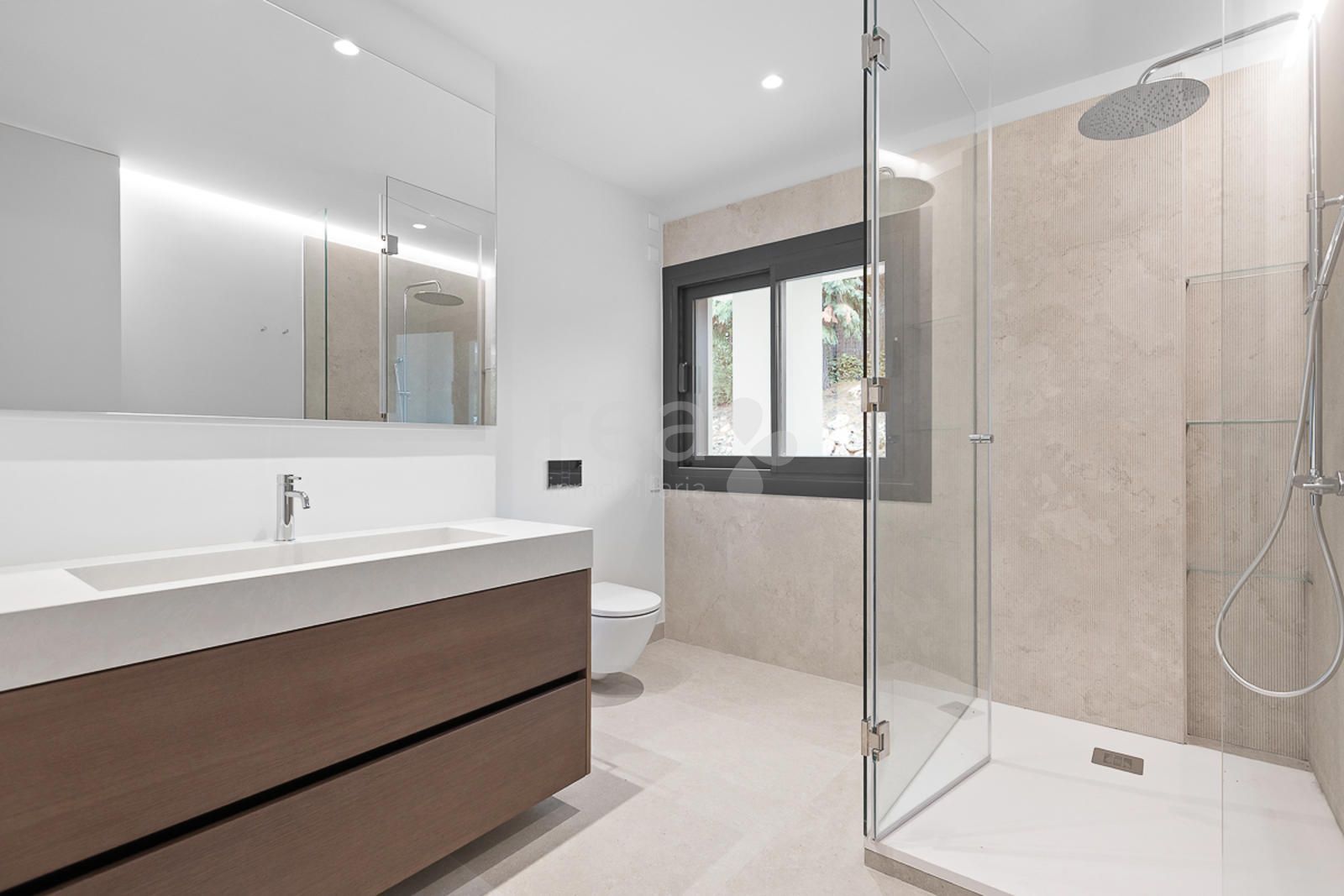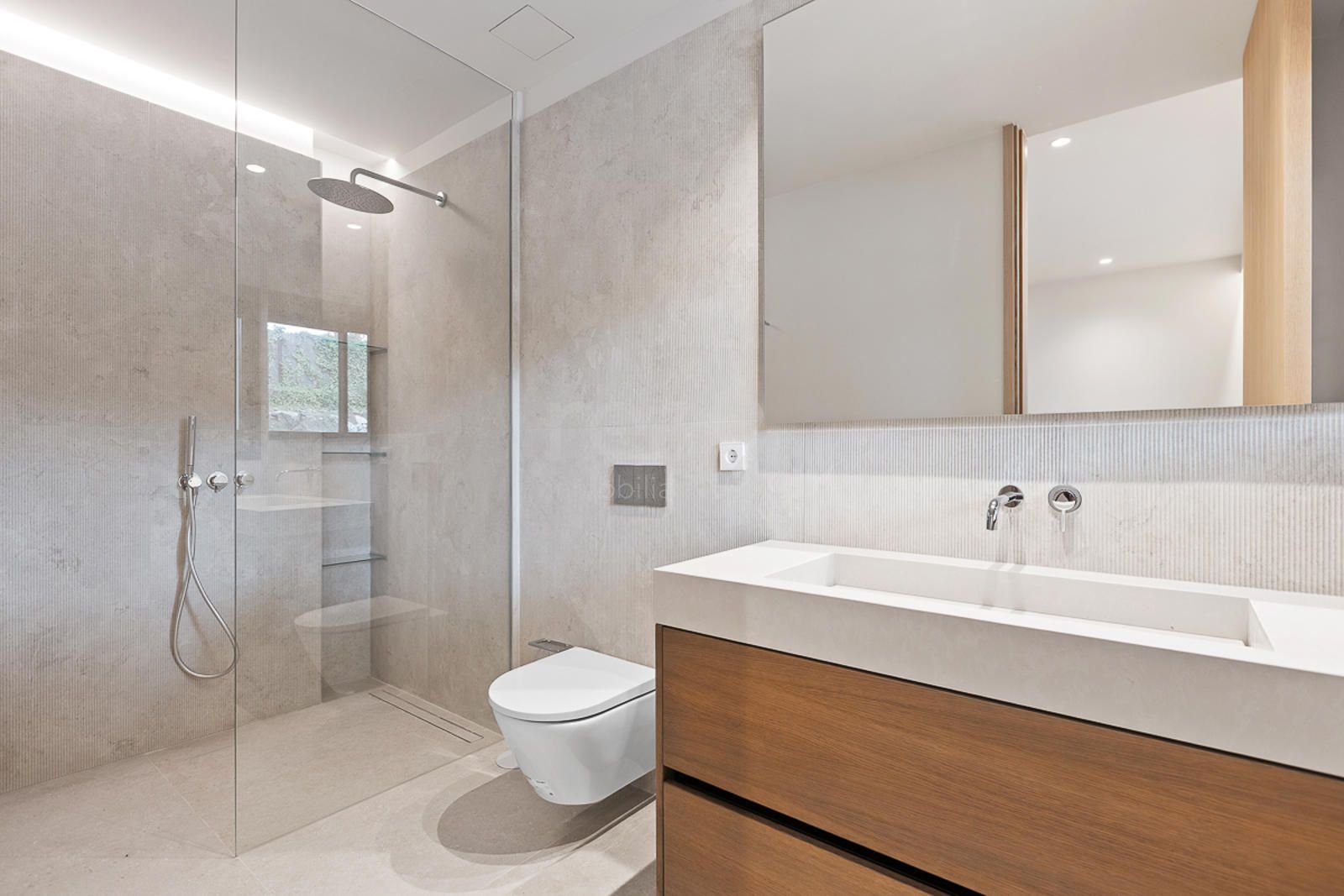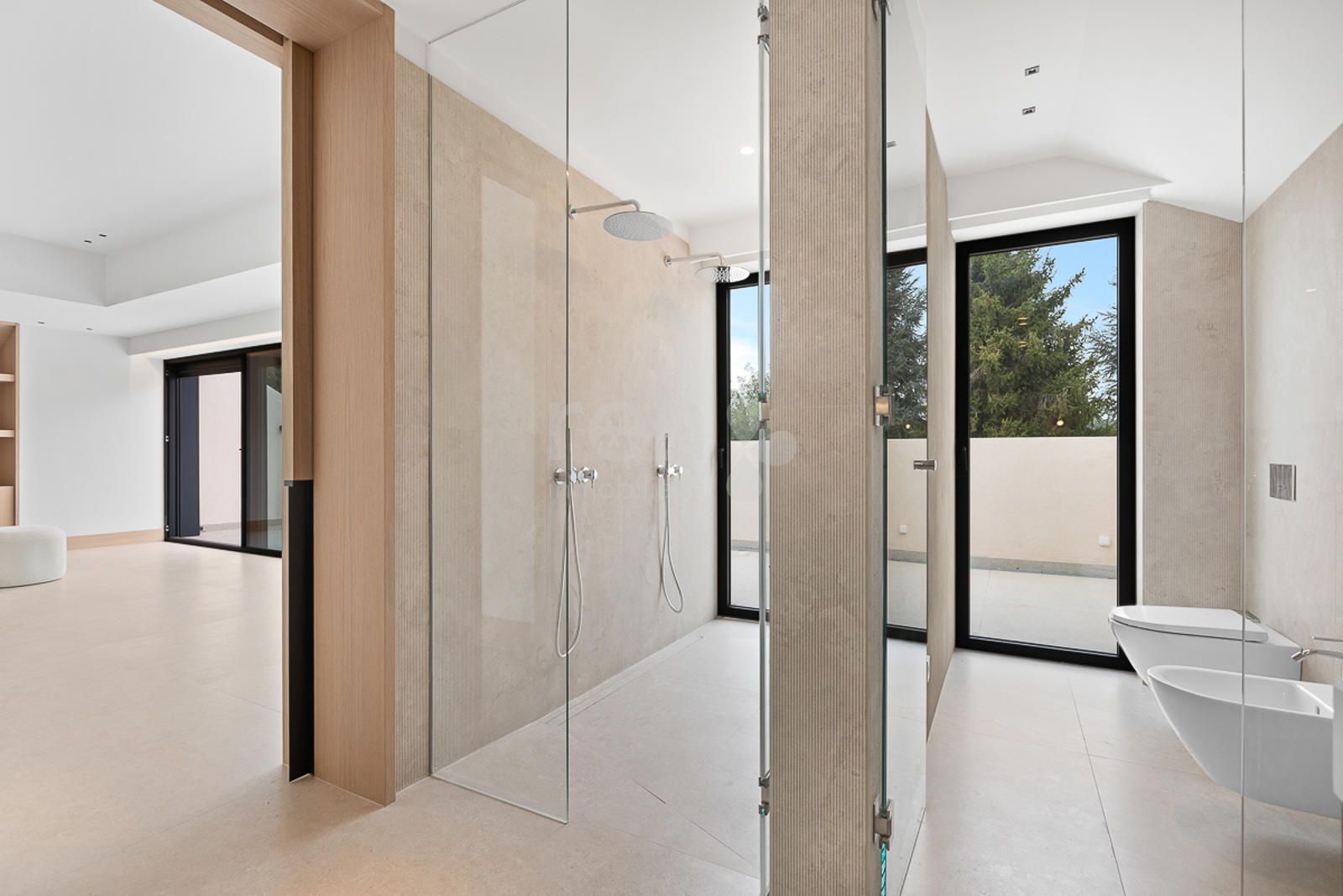 The property features aerothermal heating and cooling with fan-coils, and home automation system controlling lighting, blinds and climate.