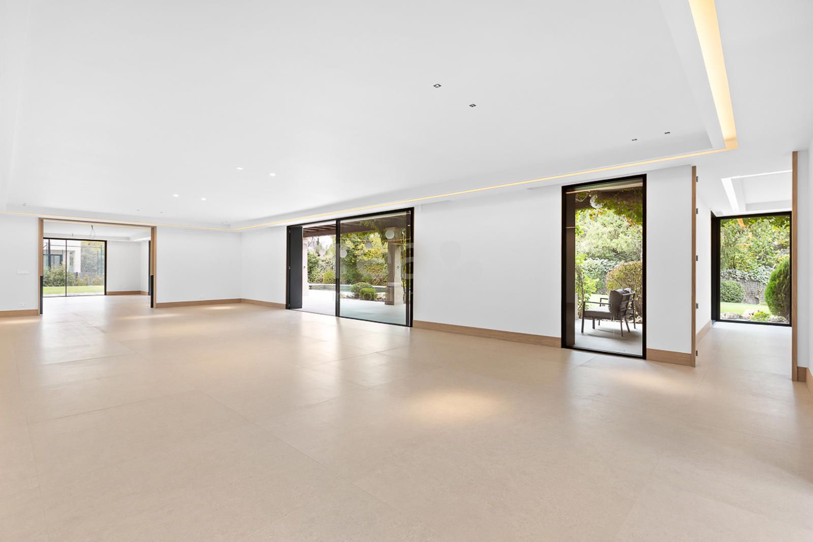 A majestic 50 m² entrance hall opens into the 80 m² living rooms, which flow out to a large covered porch overlooking the garden and ensuring complete privacy.
