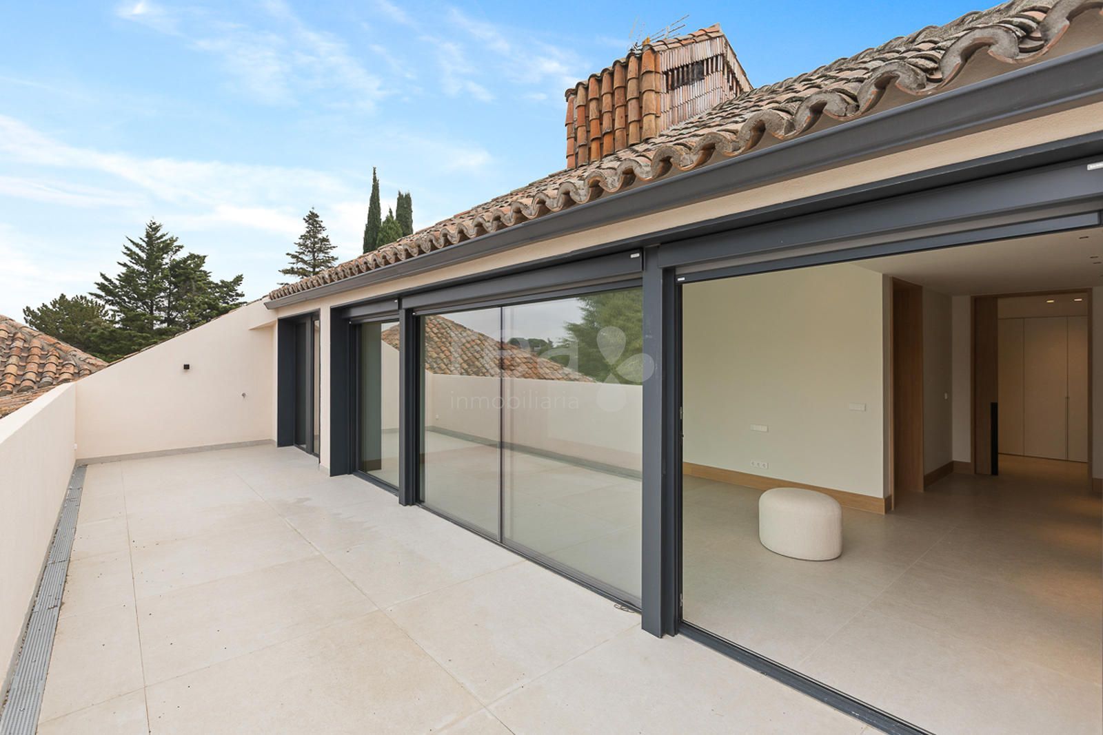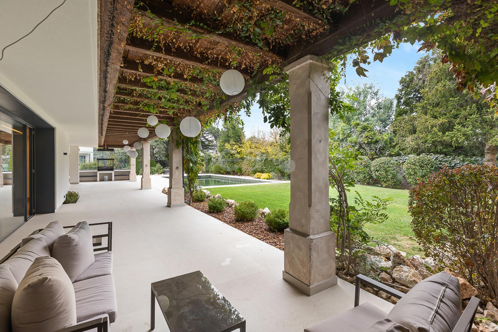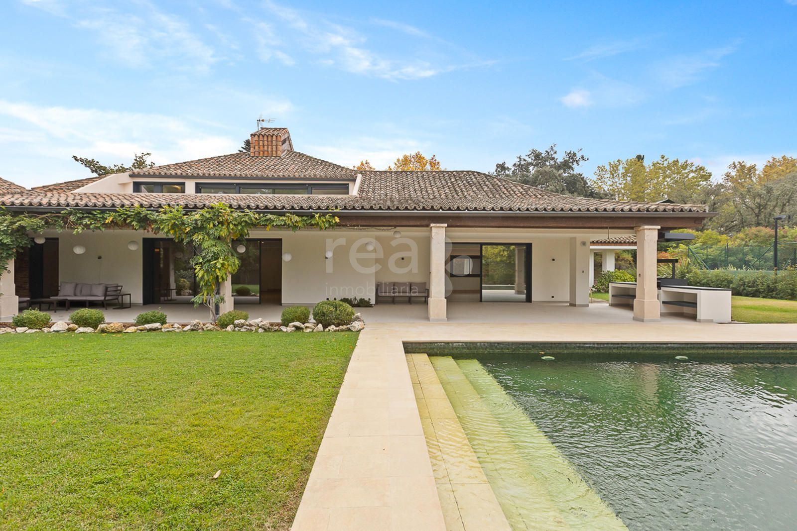 Magnificent detached villa, fully renovated just a few months ago with top-quality materials that create a sense of serenity, balance and elegance. Set within a lush garden with a wide variety of mature trees and selected species. Absolute privacy, paddle tennis court, and located in one of the quietest areas of La Moraleja.