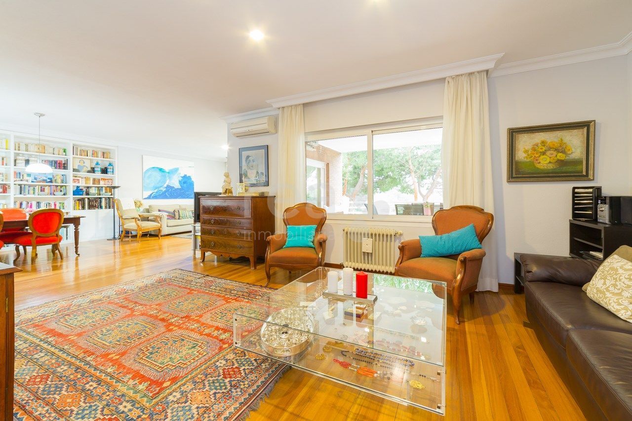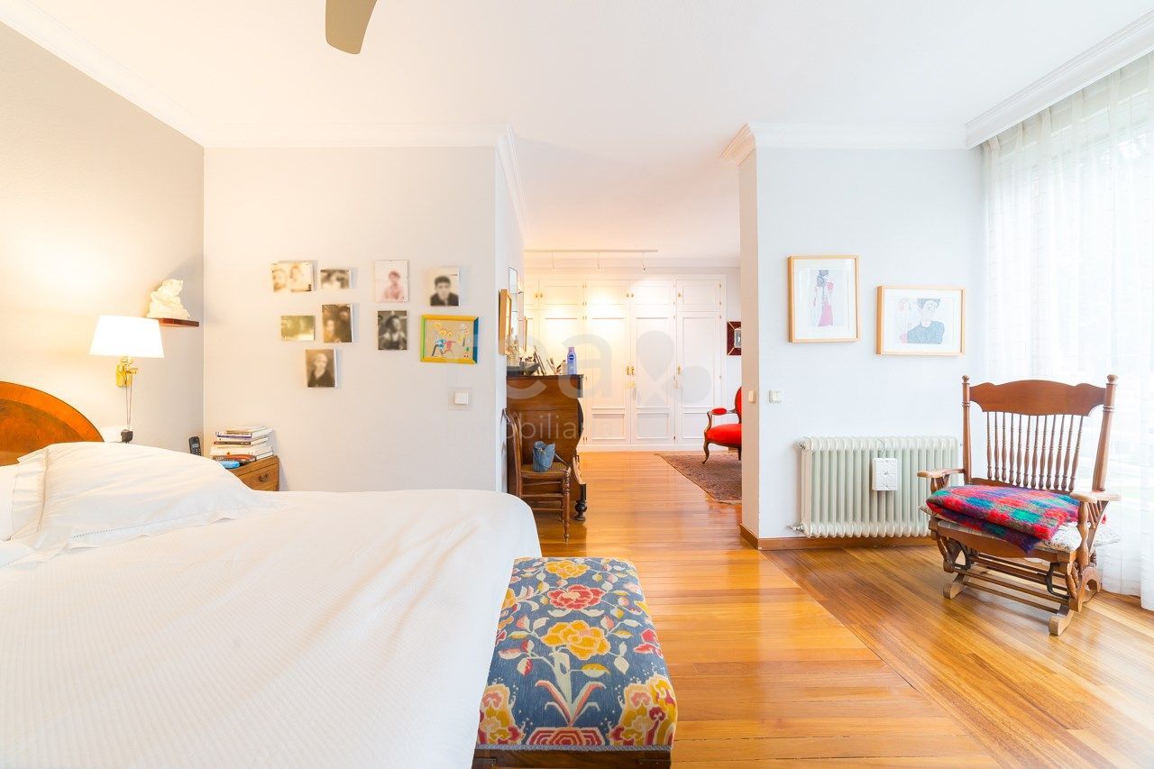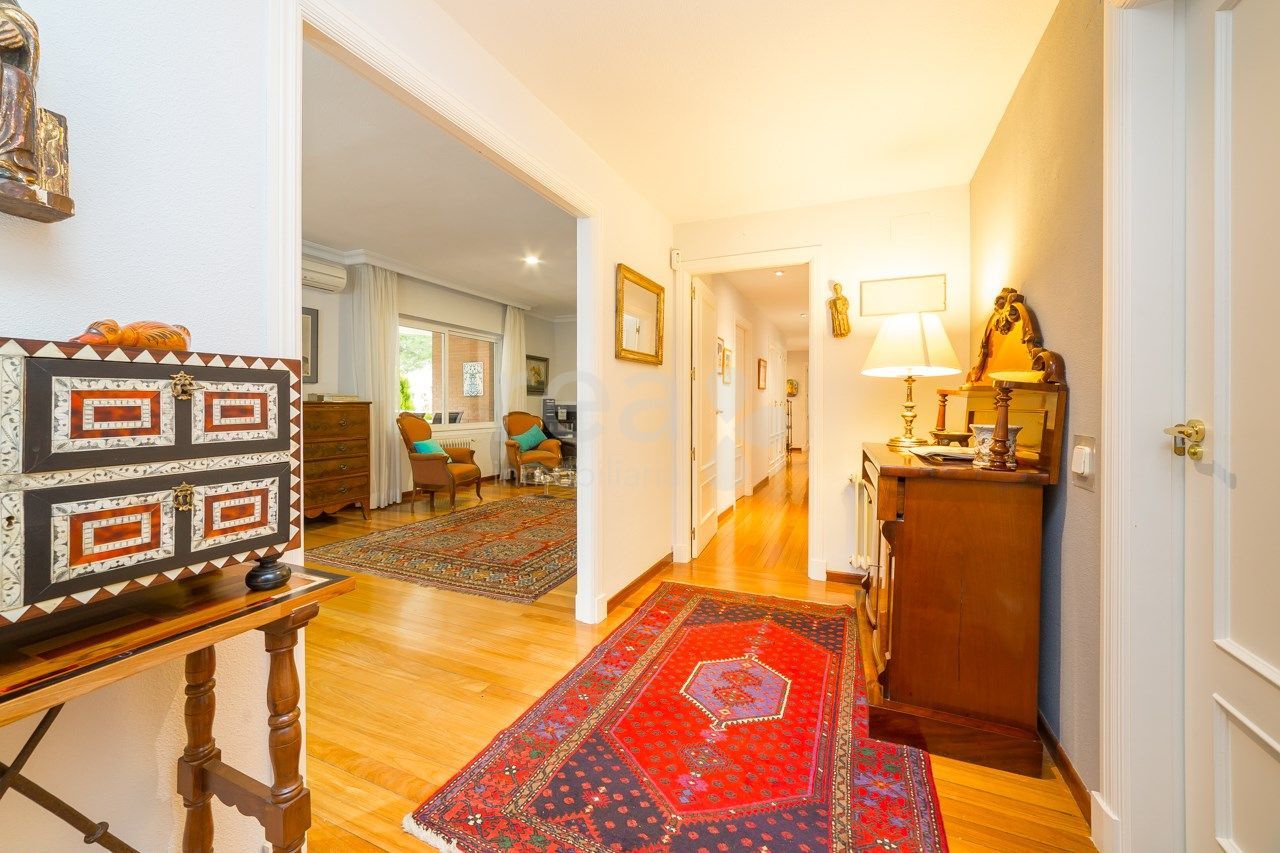 The house stands out for the spaciousness and luminosity of all its rooms and its excellent orientation towards the common areas. The main floor offers a hall, a large living room, exit to a terrace of 25 m2, a kitchen with very spacious office with pantry and drying terrace. In the rest area there are four bedrooms (one of them can serve perfectly as a service), two secondary en suite and another with its bathroom in the hallway plus the main one, large, with full bathroom with bathroom area. dressing room. The large size of the master bedroom (25 m2) attracts attention in this house. It has two parking spaces. Compound with pool and green areas. Concierge.