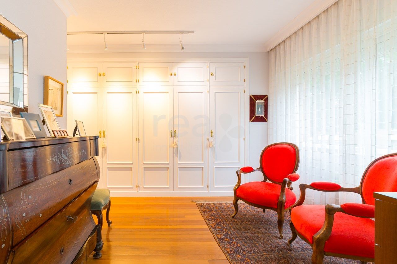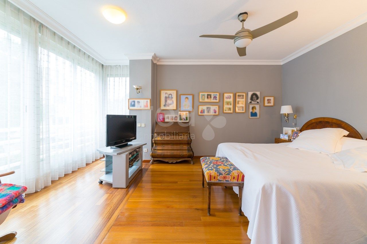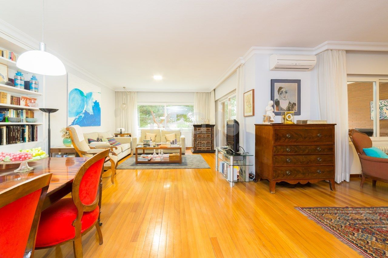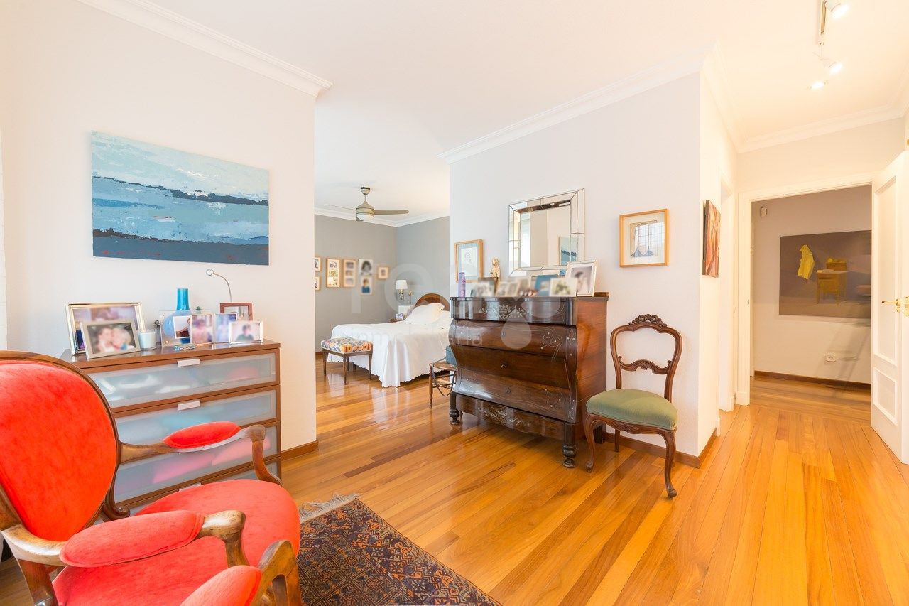 The house stands out for the spaciousness and luminosity of all its rooms and its excellent orientation towards the common areas. The main floor offers a hall, a large living room, exit to a terrace of 25 m2, a kitchen with very spacious office with pantry and drying terrace. In the rest area there are four bedrooms (one of them can serve perfectly as a service), two secondary en suite and another with its bathroom in the hallway plus the main one, large, with full bathroom with bathroom area. dressing room. The large size of the master bedroom (25 m2) attracts attention in this house. It has two parking spaces. Compound with pool and green areas. Concierge.