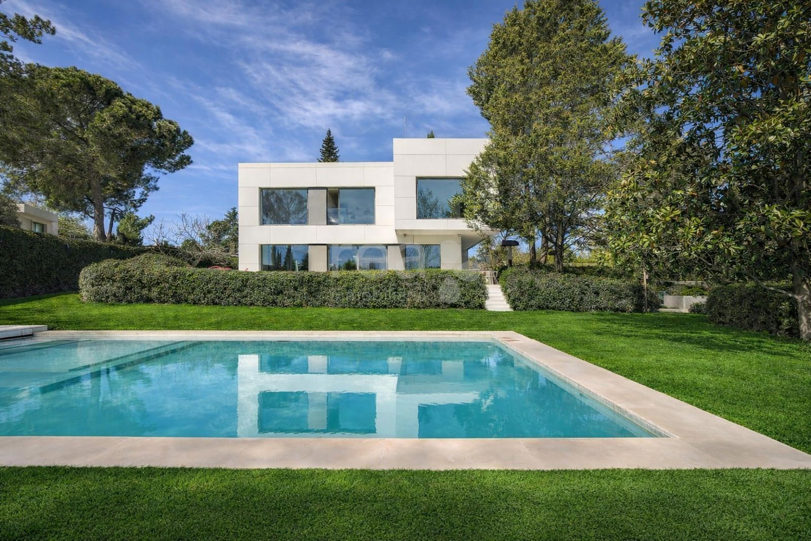 We enter the home through a spacious double-height hall with a guest toilet that leads to a spectacular living-dining room with floor-to-ceiling windows and various spaces (seating area, TV area, dining room). The views are breathtaking, as the windows overlook the Cuenca Alta del Manzanares Regional Park (which also guarantees maximum privacy and tranquility, with no neighbors).