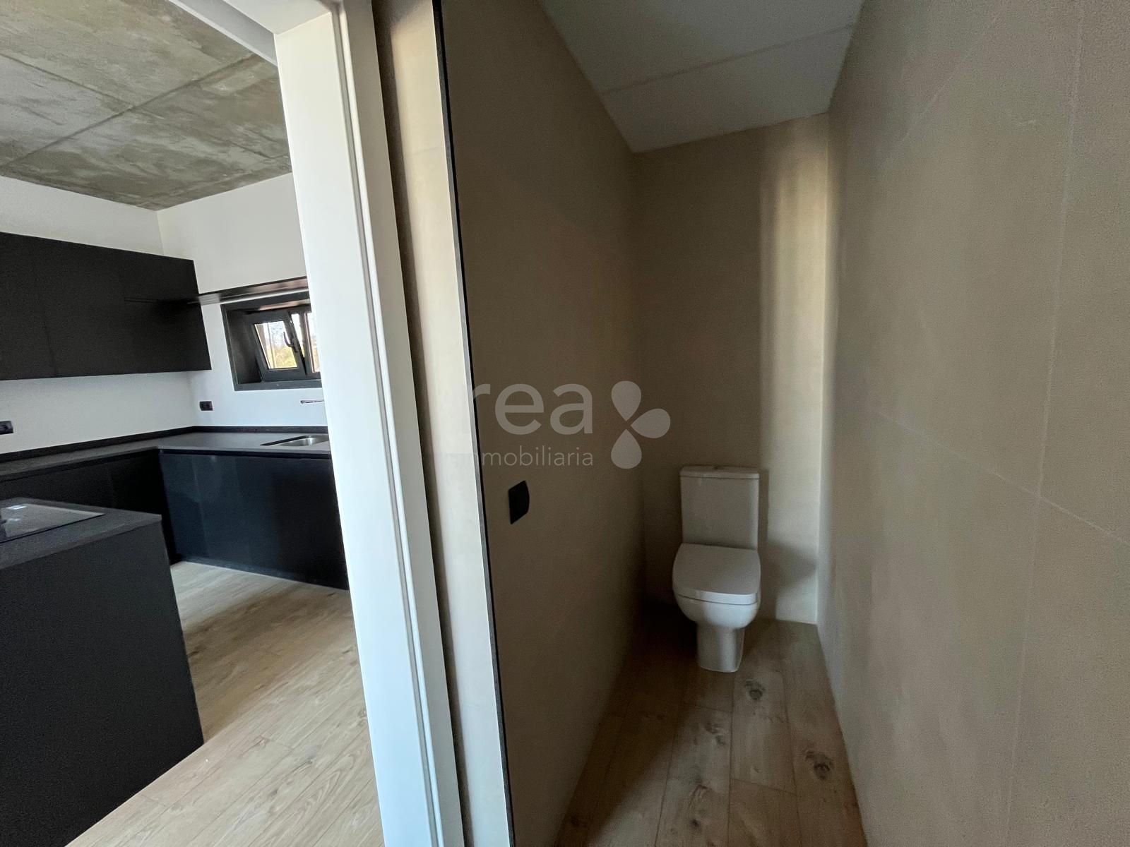 En la planta baja, se encuentra un amplio espacio diáfano de concepto abierto que integra una cocina equipada y un salón-comedor con ventanales de suelo a techo que inundan de luz el interior. También dispone de un aseo de cortesía.