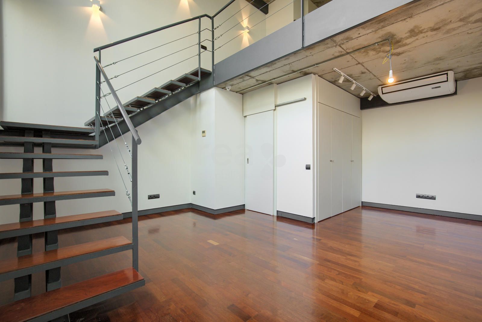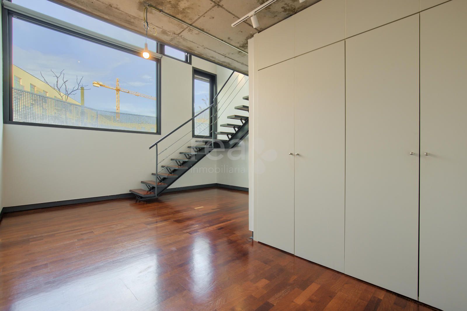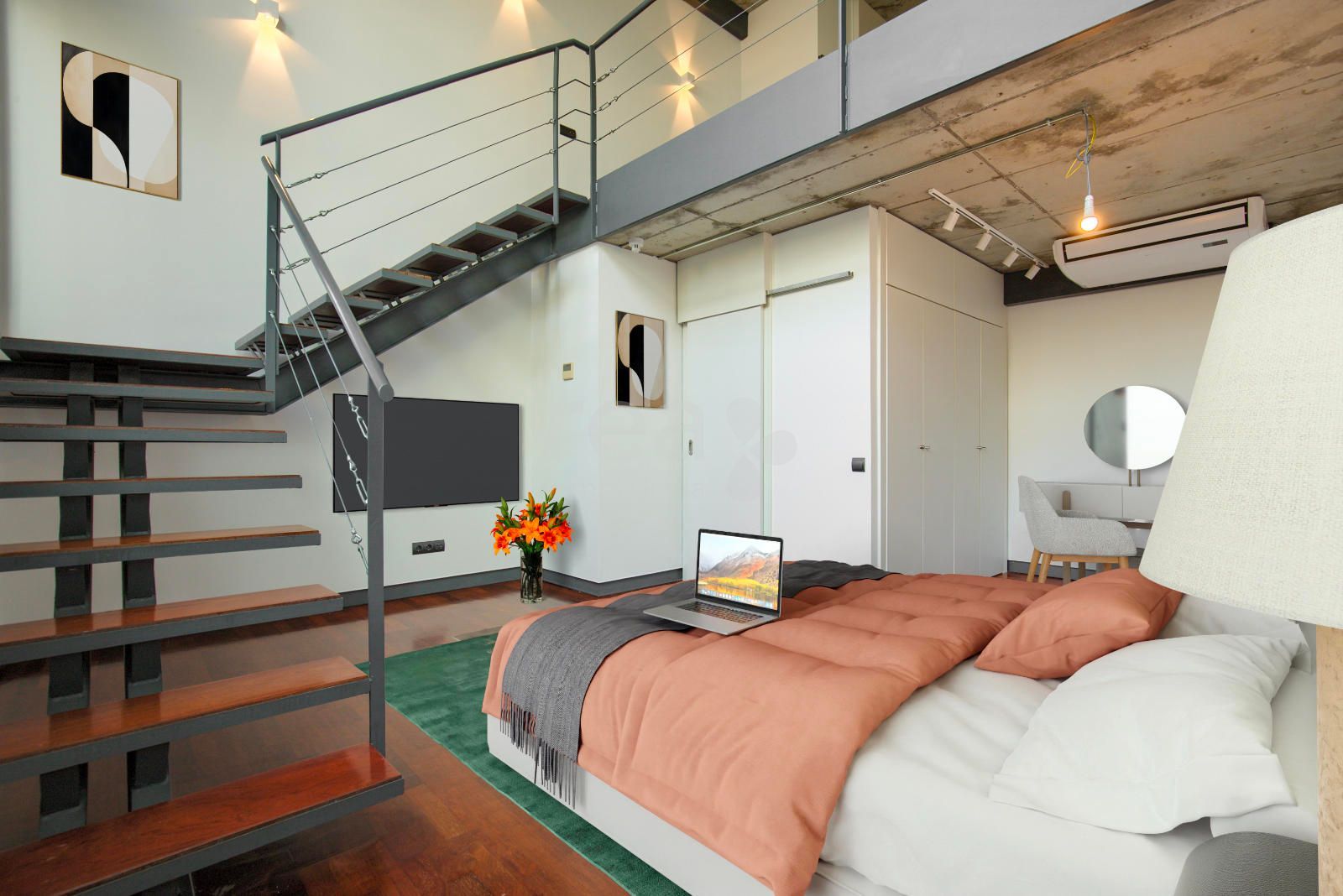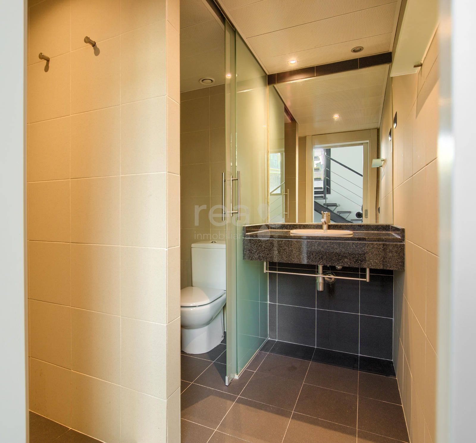 La planta inferior alberga el dormitorio en espacio abierto con baño completo y acceso directo a un jardín privado de 20 m², ideal para disfrutar del aire libre.