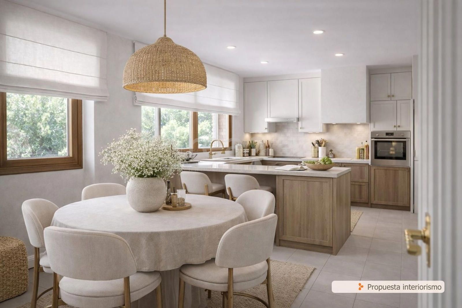 La cocina, completamente equipada, ofrece un espacio cómodo y práctico para el día a día, con abundante capacidad de almacenaje. Junto a ella se sitúa el dormitorio de servicio con baño privado.