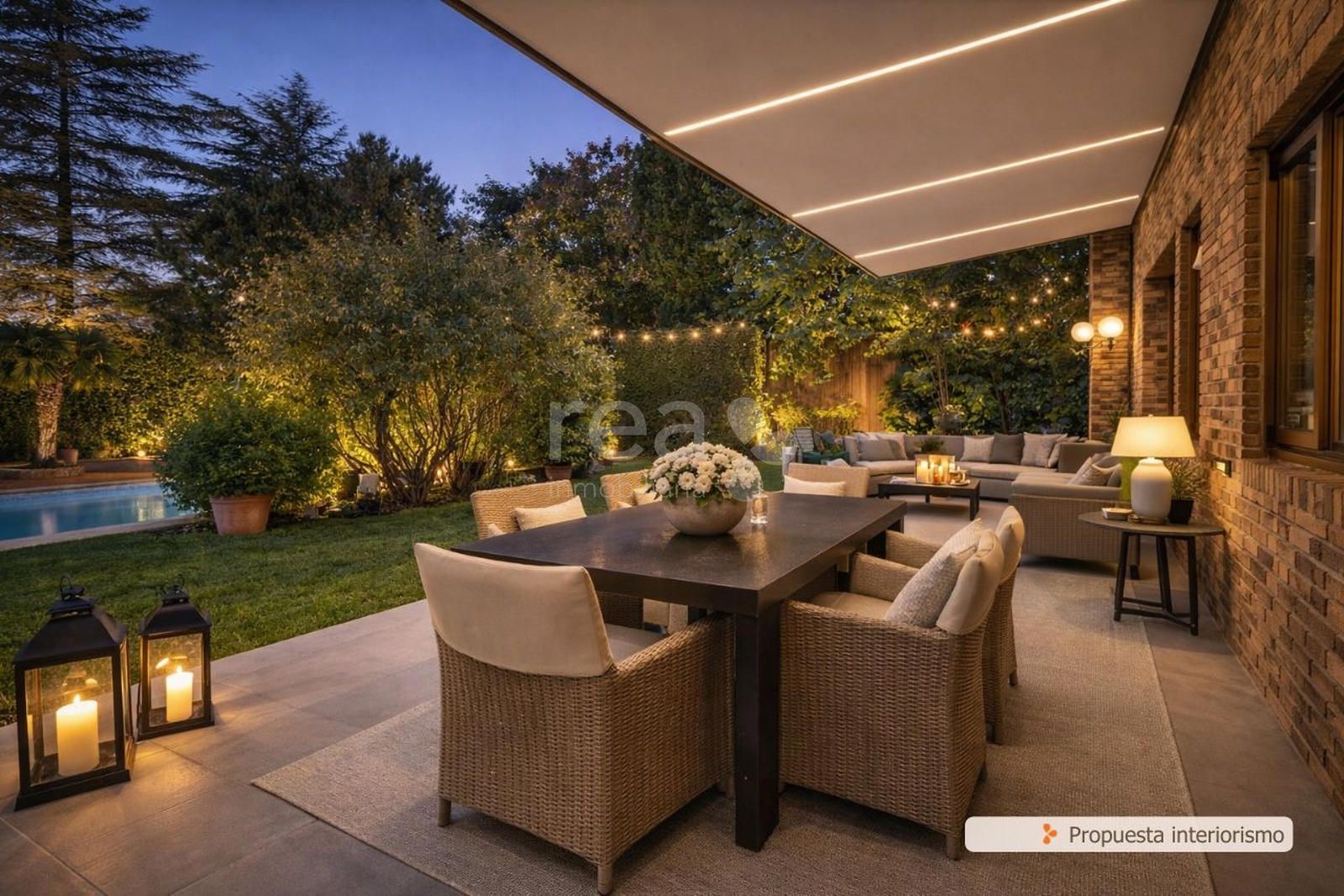 El exterior ofrece un cuidado jardín privado, un agradable porche y una estupenda piscina, creando un entorno perfecto para el descanso y la vida al aire libre.