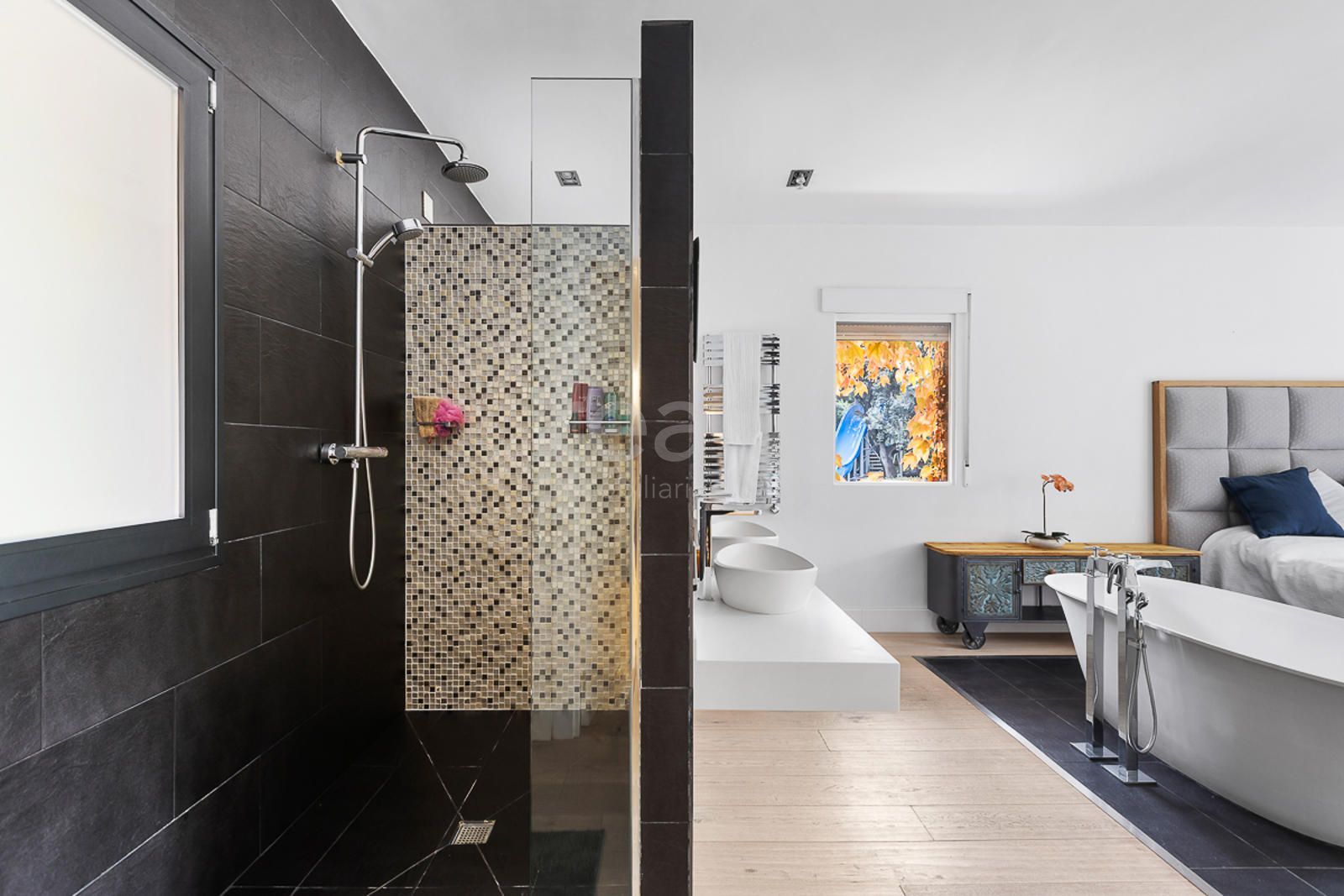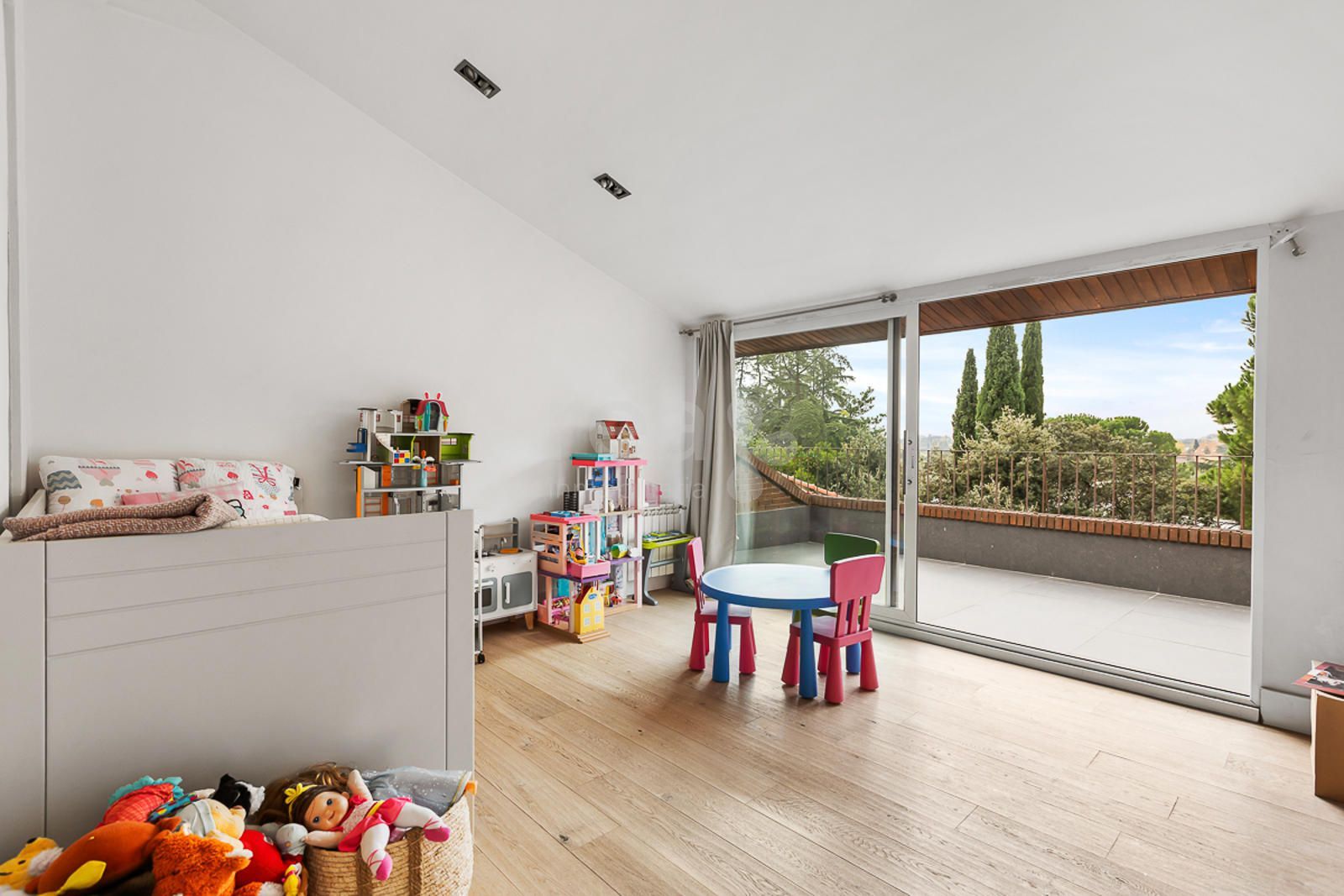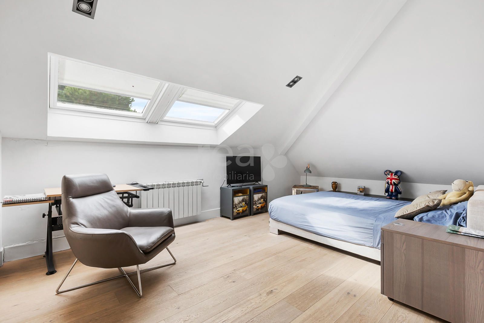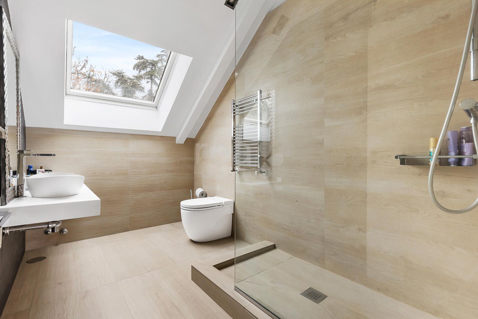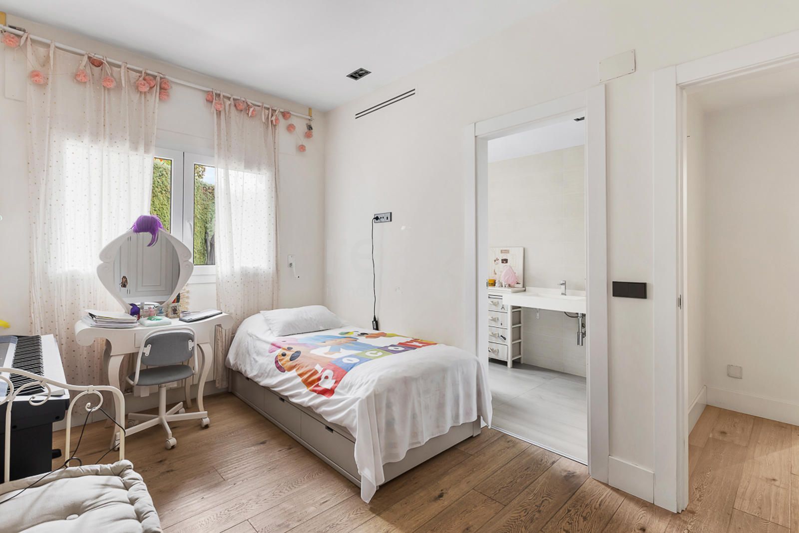 Cuatro amplios dormitorios, todos ellos muy luminosos. Dos de ellos cuentan con baño en suite y los otros dos comparten un baño completo. Uno de los dormitorios dispone de acceso a una gran terraza privada, ideal como zona de juegos, lectura o estudio.