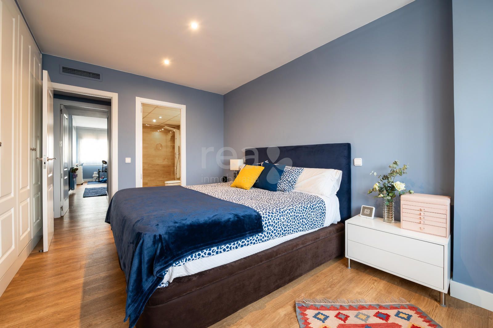 El ático dispone de aire acondicionado centralizado por conductos, además de dos plazas de garaje, una de ellas equipada con cargador para vehículo eléctrico.