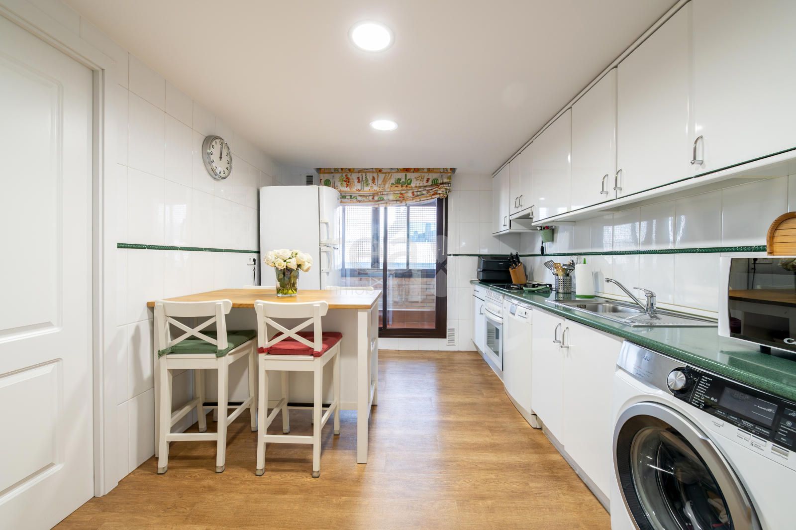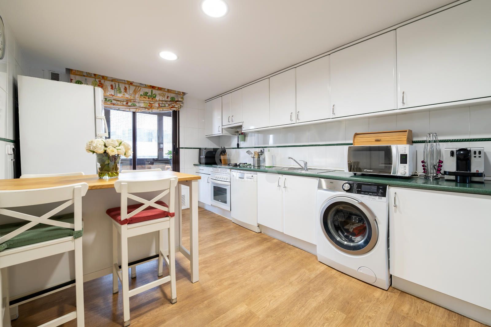 En la planta principal se encuentra un amplio y luminoso salón-comedor con salida directa a dos terrazas independientes, generando una conexión fluida con el exterior. La cocina, de excelente tamaño, cuenta con acceso directo al comedor y salida a una segunda terraza que incluye zona de lavadero.