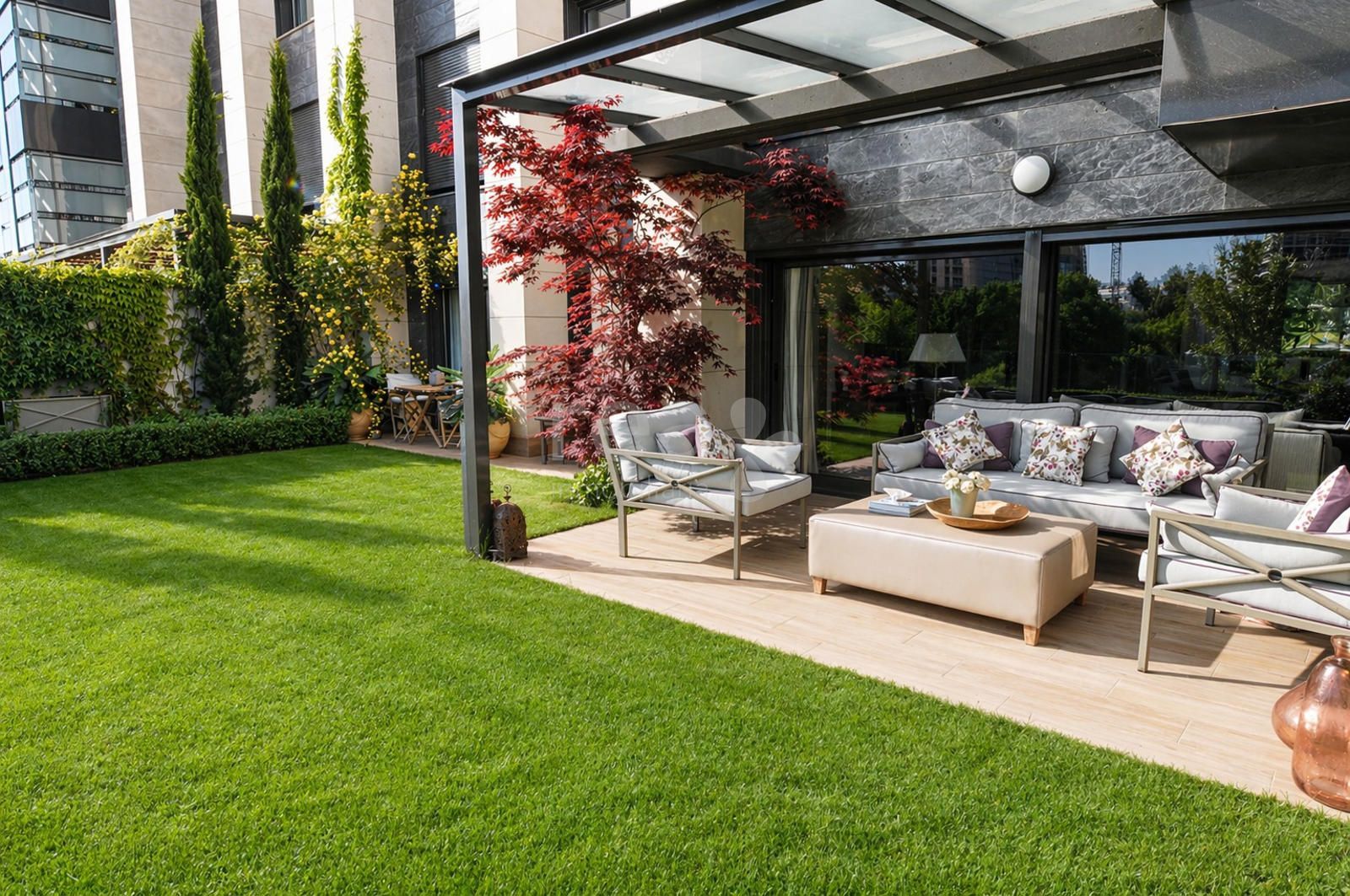La vivienda que destaca por sus excelentes calidades, su cuidada distribución y, especialmente, por su jardín privado de aproximadamente 200 m², con gran privacidad y una perfecta conexión entre interior y exterior.